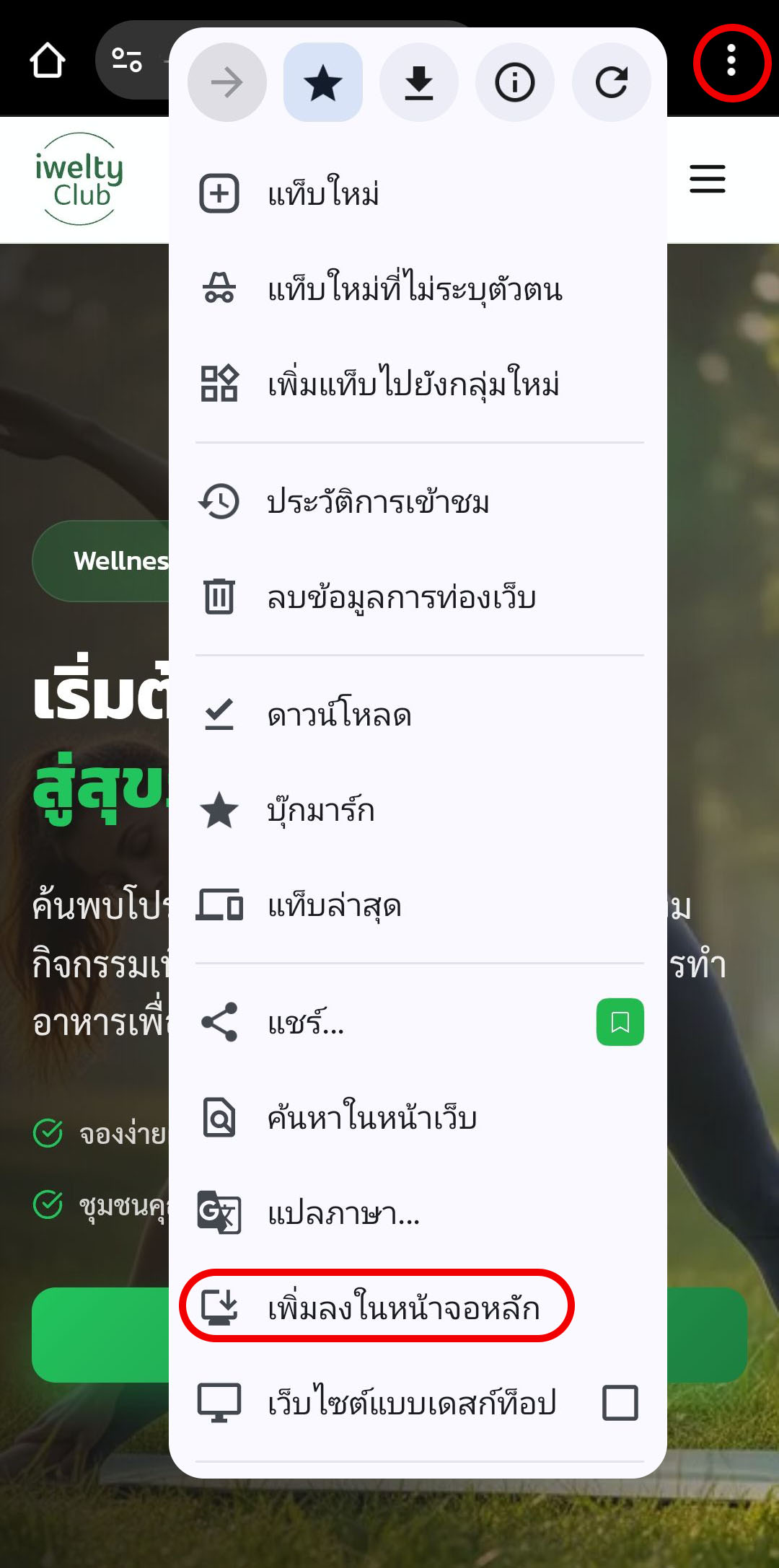 หรือคลิกปุ่มเมนู (⋮) ที่มุมขวาบนของเบราว์เซอร์